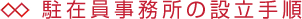 駐在員事務所は、会社法で設置する手続きは存在しません、原則として一定の場所を確保した場合(不動産の購入や賃貸契約)は、自由に開設できます。
